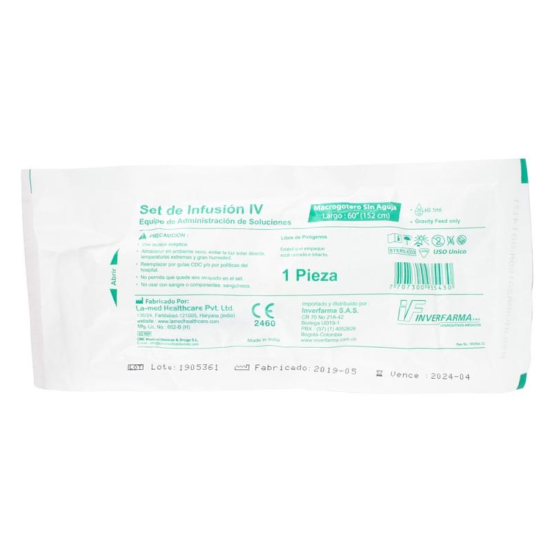 Equipo administración solución macrogoteo sin aguja Inverfarma