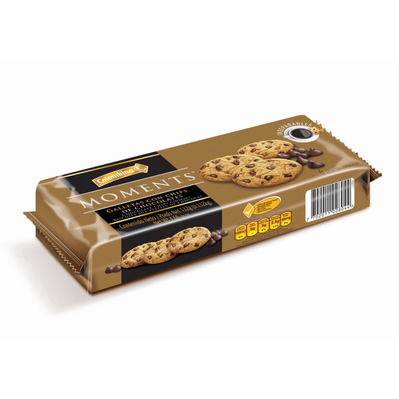 Galleta Rellena Moments Chips Chocolate 6 unidades 132 g