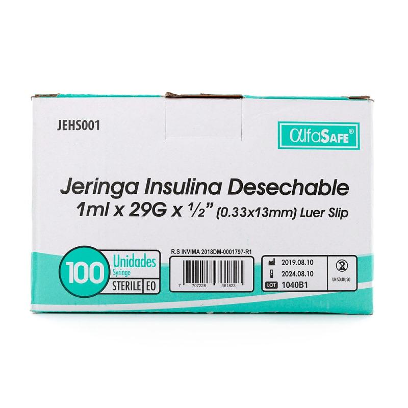 Jeringa Alfa Insulina 1 cc 29G x 1/2 13 mm 100 unidades