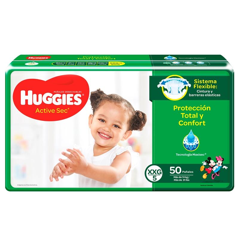 Pañales Huggies Active Sec Etapa 5 XXG 50 unidades