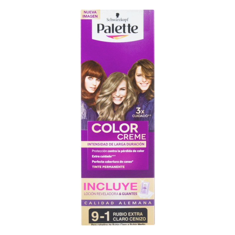 Tinte Palette Crema Tubo 9-1 Rubio Extra Claro Cenizo