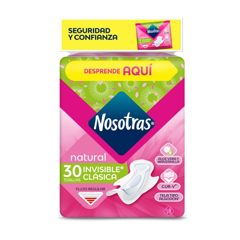 Toallas Nosotras Natural Invisible Clásica tela 30 unidades