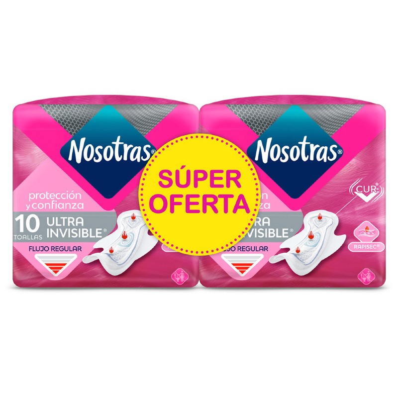 Toallas Nosotras Ultrafinas Invisible RapiSec 10 unidades x2